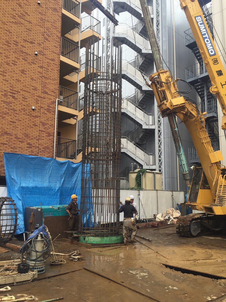 鉄筋籠建込状況です。杭径はなんと1800φさすがに迫力ありますね。