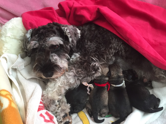 この親が頑張ってくれて、4頭の赤ちゃんミニチュアシュナウザーを授かりました。