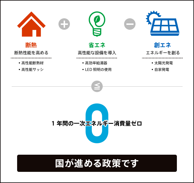 「年間で消費する住宅のエネルギー量が正味(ネット)概ねゼロ以下」を実現する住宅。